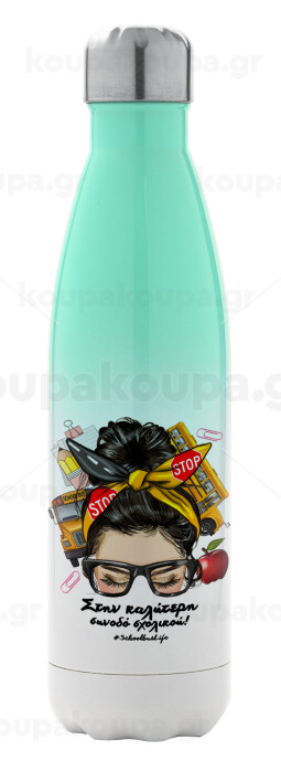 Στην καλύτερη συνοδό σχολικού!, Μεταλλικό παγούρι θερμός Πράσινο/Λευκό (Stainless steel), διπλού τοιχώματος, 500ml
