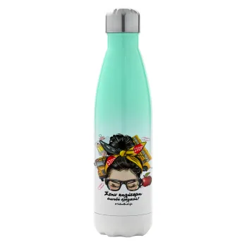 Στην καλύτερη συνοδό σχολικού!, Μεταλλικό παγούρι θερμός Πράσινο/Λευκό (Stainless steel), διπλού τοιχώματος, 500ml
