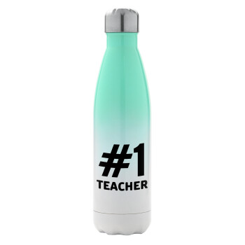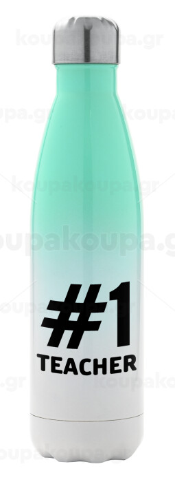 #1 teacher, Μεταλλικό παγούρι θερμός Πράσινο/Λευκό (Stainless steel), διπλού τοιχώματος, 500ml