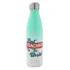 Best teacher in the World!, Μεταλλικό παγούρι θερμός Πράσινο/Λευκό (Stainless steel), διπλού τοιχώματος, 500ml