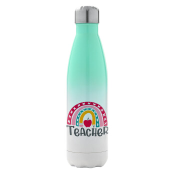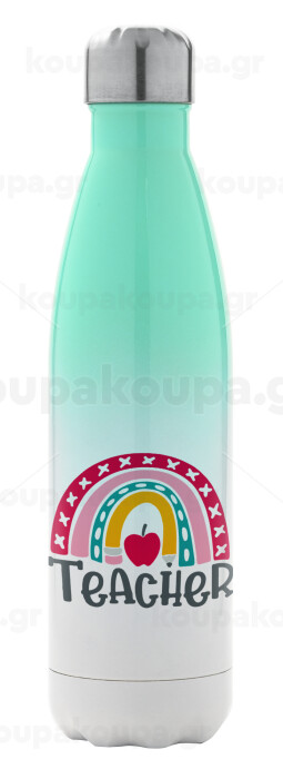 Rainbow teacher, Μεταλλικό παγούρι θερμός Πράσινο/Λευκό (Stainless steel), διπλού τοιχώματος, 500ml