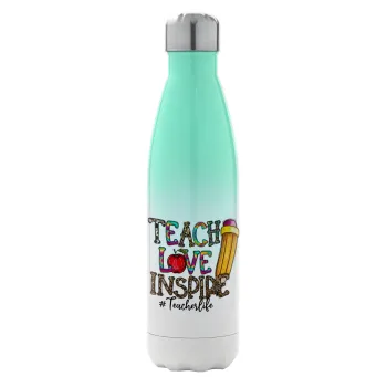 Teach, Love, Inspire, Μεταλλικό παγούρι θερμός Πράσινο/Λευκό (Stainless steel), διπλού τοιχώματος, 500ml