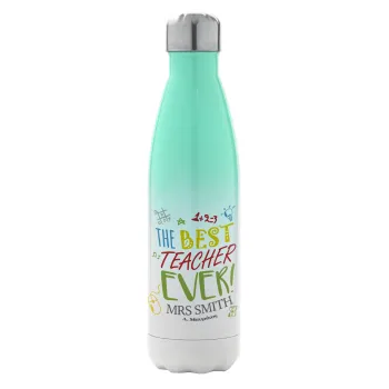 The best teacher ever!, Μεταλλικό παγούρι θερμός Πράσινο/Λευκό (Stainless steel), διπλού τοιχώματος, 500ml