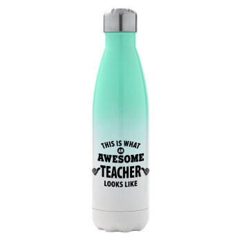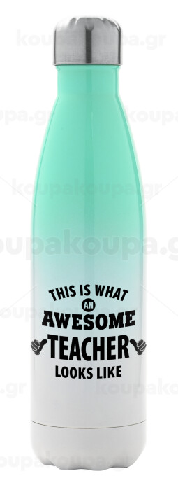 This is what an awesome teacher looks like hands!!! , Μεταλλικό παγούρι θερμός Πράσινο/Λευκό (Stainless steel), διπλού τοιχώματος, 500ml
