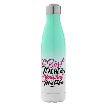 Typography quotes your best teacher is your last mistake, Μεταλλικό παγούρι θερμός Πράσινο/Λευκό (Stainless steel), διπλού τοιχώματος, 500ml
