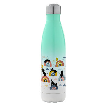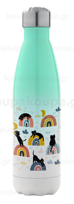 Γατούλες, Μεταλλικό παγούρι θερμός Πράσινο/Λευκό (Stainless steel), διπλού τοιχώματος, 500ml