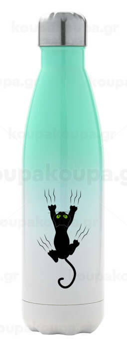 Γατούλα γρατζουνιά, Μεταλλικό παγούρι θερμός Πράσινο/Λευκό (Stainless steel), διπλού τοιχώματος, 500ml