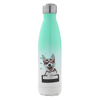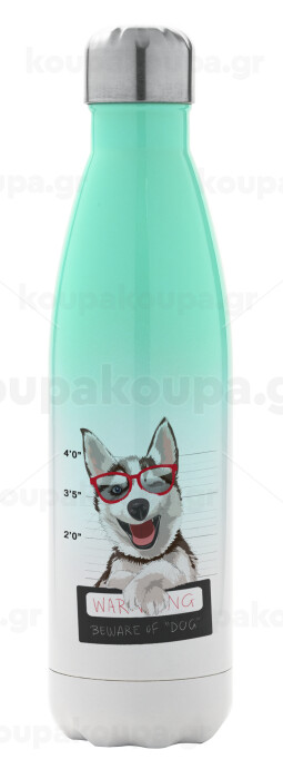 Warning, beware of Dog, Μεταλλικό παγούρι θερμός Πράσινο/Λευκό (Stainless steel), διπλού τοιχώματος, 500ml