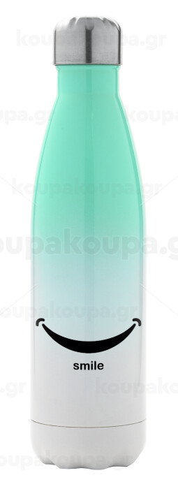 Smile!!!, Μεταλλικό παγούρι θερμός Πράσινο/Λευκό (Stainless steel), διπλού τοιχώματος, 500ml