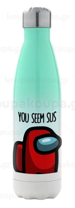 Among US, you seem sus, Μεταλλικό παγούρι θερμός Πράσινο/Λευκό (Stainless steel), διπλού τοιχώματος, 500ml