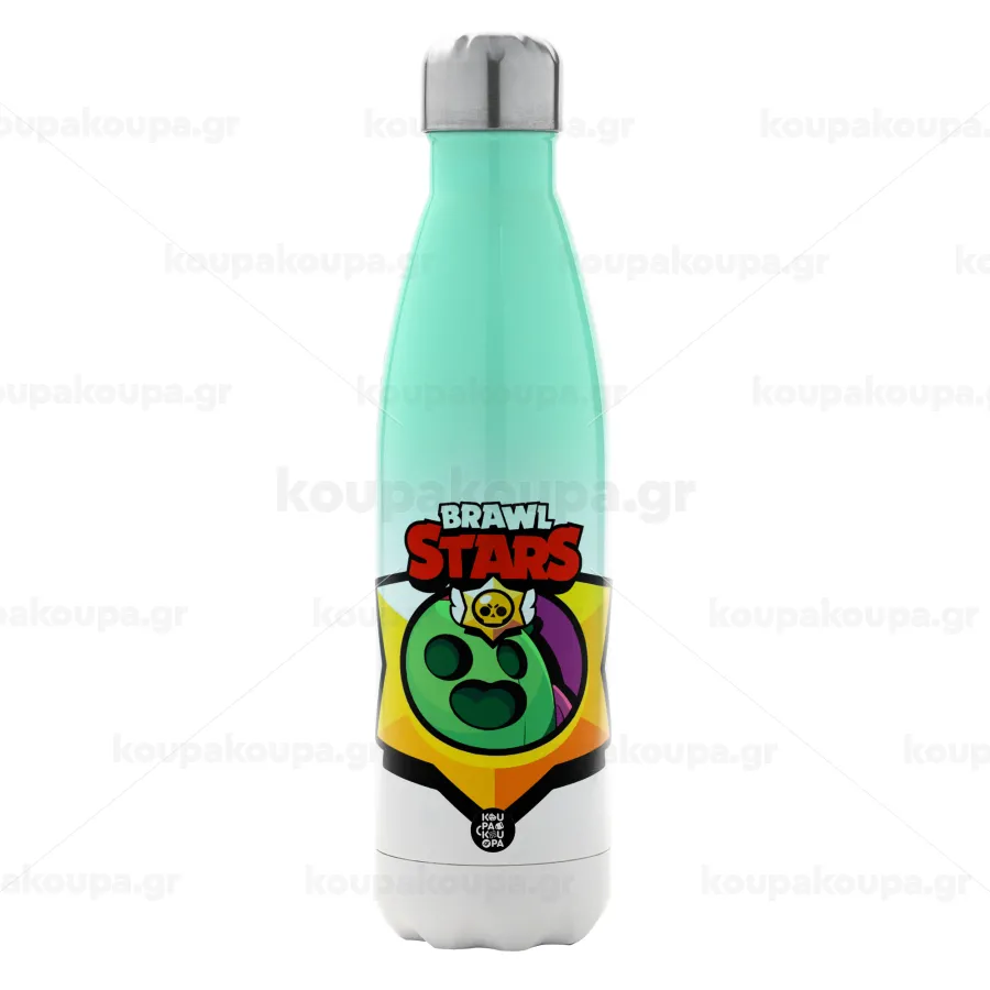 Brawl Stars Spike, Μεταλλικό παγούρι θερμός Πράσινο/Λευκό (Stainless steel), διπλού τοιχώματος, 500ml