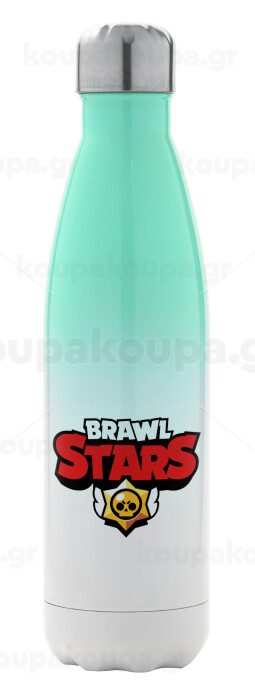 Brawl Stars, Μεταλλικό παγούρι θερμός Πράσινο/Λευκό (Stainless steel), διπλού τοιχώματος, 500ml