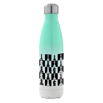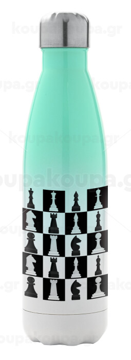 Chess set, Μεταλλικό παγούρι θερμός Πράσινο/Λευκό (Stainless steel), διπλού τοιχώματος, 500ml
