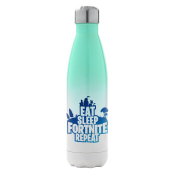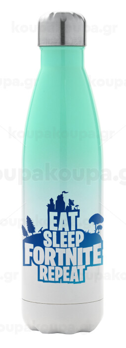 Eat Sleep Fortnite Repeat, Μεταλλικό παγούρι θερμός Πράσινο/Λευκό (Stainless steel), διπλού τοιχώματος, 500ml
