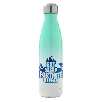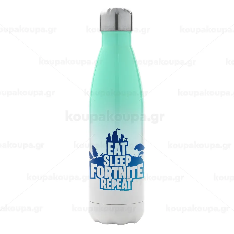 Eat Sleep Fortnite Repeat, Μεταλλικό παγούρι θερμός Πράσινο/Λευκό (Stainless steel), διπλού τοιχώματος, 500ml
