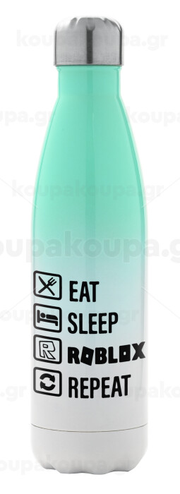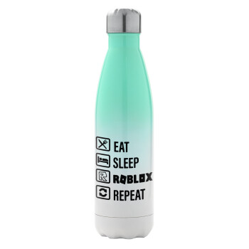 Eat, Sleep, Roblox, Repeat, Μεταλλικό παγούρι θερμός Πράσινο/Λευκό (Stainless steel), διπλού τοιχώματος, 500ml