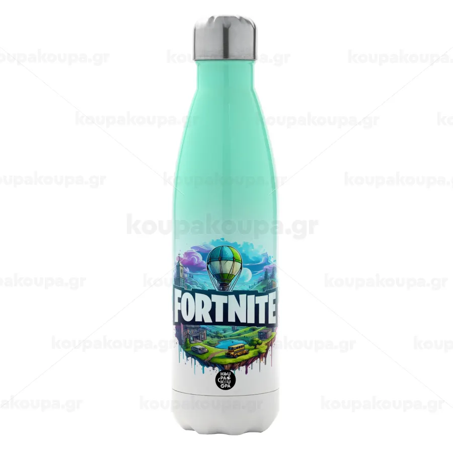 Fortnite land, Μεταλλικό παγούρι θερμός Πράσινο/Λευκό (Stainless steel), διπλού τοιχώματος, 500ml