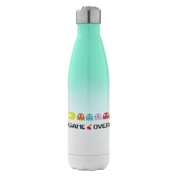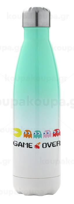 GAME OVER pac-man, Μεταλλικό παγούρι θερμός Πράσινο/Λευκό (Stainless steel), διπλού τοιχώματος, 500ml