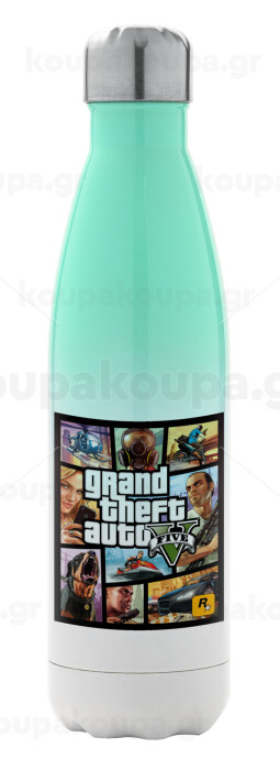 GTA V, Μεταλλικό παγούρι θερμός Πράσινο/Λευκό (Stainless steel), διπλού τοιχώματος, 500ml