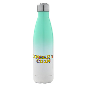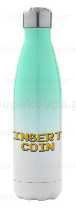 Insert coin!!!, Μεταλλικό παγούρι θερμός Πράσινο/Λευκό (Stainless steel), διπλού τοιχώματος, 500ml