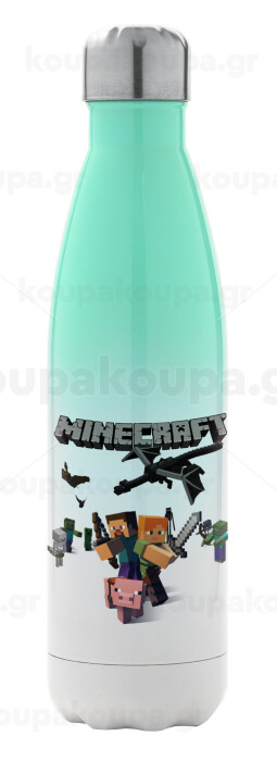 Minecraft Alex, Μεταλλικό παγούρι θερμός Πράσινο/Λευκό (Stainless steel), διπλού τοιχώματος, 500ml