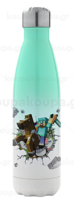 Minecraft brick, Μεταλλικό παγούρι θερμός Πράσινο/Λευκό (Stainless steel), διπλού τοιχώματος, 500ml