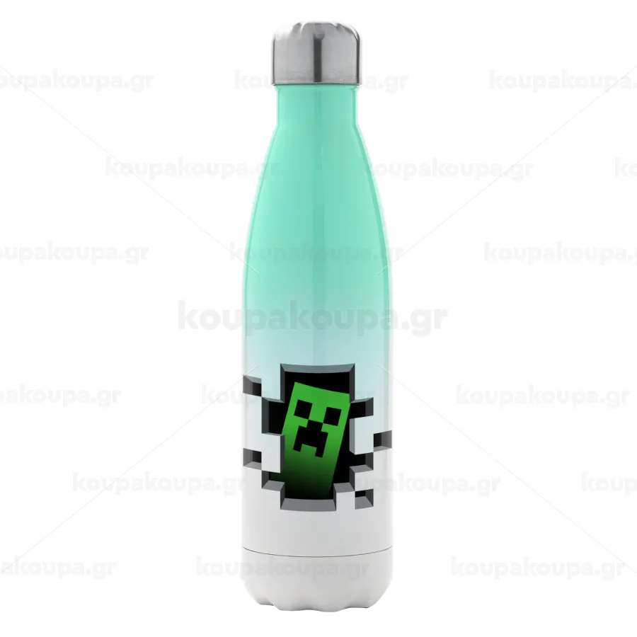 Minecraft creeper, Μεταλλικό παγούρι θερμός Πράσινο/Λευκό (Stainless steel), διπλού τοιχώματος, 500ml