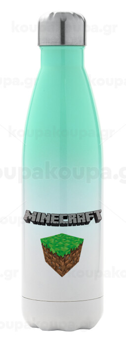 Minecraft dirt, Μεταλλικό παγούρι θερμός Πράσινο/Λευκό (Stainless steel), διπλού τοιχώματος, 500ml