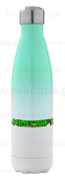 Minecraft logo green, Μεταλλικό παγούρι θερμός Πράσινο/Λευκό (Stainless steel), διπλού τοιχώματος, 500ml