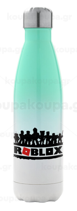 Roblox team, Μεταλλικό παγούρι θερμός Πράσινο/Λευκό (Stainless steel), διπλού τοιχώματος, 500ml