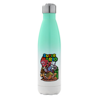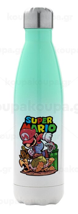 Super mario Jump, Μεταλλικό παγούρι θερμός Πράσινο/Λευκό (Stainless steel), διπλού τοιχώματος, 500ml