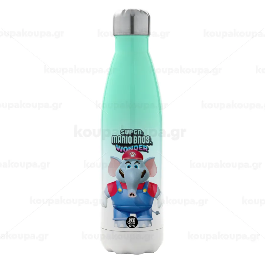 Super mario wonder, Μεταλλικό παγούρι θερμός Πράσινο/Λευκό (Stainless steel), διπλού τοιχώματος, 500ml