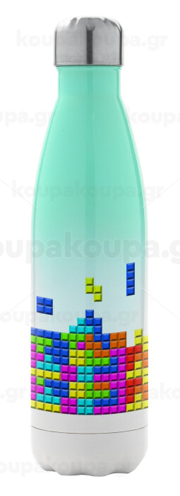 Tetris blocks, Μεταλλικό παγούρι θερμός Πράσινο/Λευκό (Stainless steel), διπλού τοιχώματος, 500ml
