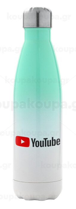 Youtube, Μεταλλικό παγούρι θερμός Πράσινο/Λευκό (Stainless steel), διπλού τοιχώματος, 500ml