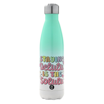 Delulu, Μεταλλικό παγούρι θερμός Πράσινο/Λευκό (Stainless steel), διπλού τοιχώματος, 500ml