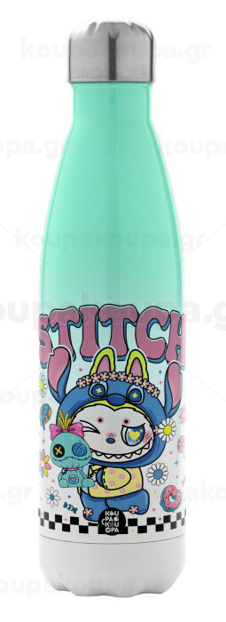 Labubu Stitch, Μεταλλικό παγούρι θερμός Πράσινο/Λευκό (Stainless steel), διπλού τοιχώματος, 500ml