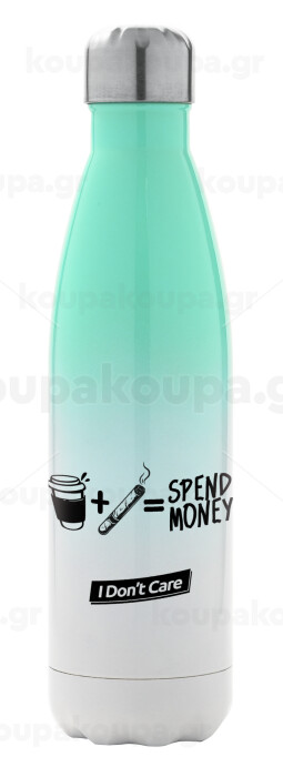 Spend Money, Μεταλλικό παγούρι θερμός Πράσινο/Λευκό (Stainless steel), διπλού τοιχώματος, 500ml