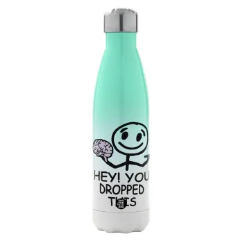 Hey! You dropped this, Μεταλλικό παγούρι θερμός Πράσινο/Λευκό (Stainless steel), διπλού τοιχώματος, 500ml
