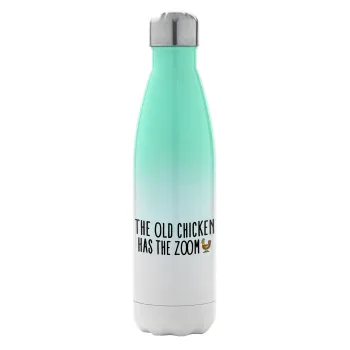 The old chicken has the zoom, Μεταλλικό παγούρι θερμός Πράσινο/Λευκό (Stainless steel), διπλού τοιχώματος, 500ml