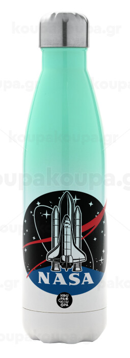 NASA Badge, Μεταλλικό παγούρι θερμός Πράσινο/Λευκό (Stainless steel), διπλού τοιχώματος, 500ml