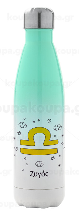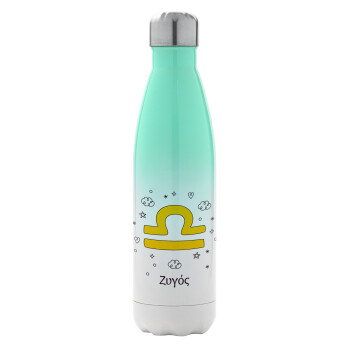 Ζώδια Ζυγός, Μεταλλικό παγούρι θερμός Πράσινο/Λευκό (Stainless steel), διπλού τοιχώματος, 500ml