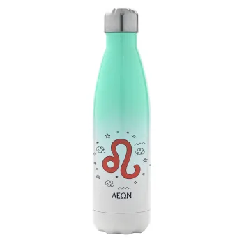 Ζώδια Λέων, Μεταλλικό παγούρι θερμός Πράσινο/Λευκό (Stainless steel), διπλού τοιχώματος, 500ml