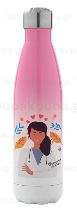 Ευχαριστώ για όλα γιατρέ, Μεταλλικό παγούρι θερμός Ροζ/Λευκό (Stainless steel), διπλού τοιχώματος, 500ml