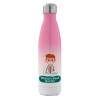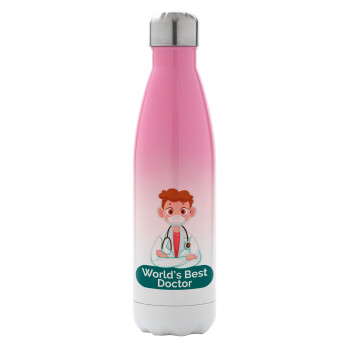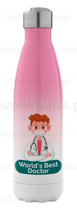 World's Best Doctor, Μεταλλικό παγούρι θερμός Ροζ/Λευκό (Stainless steel), διπλού τοιχώματος, 500ml
