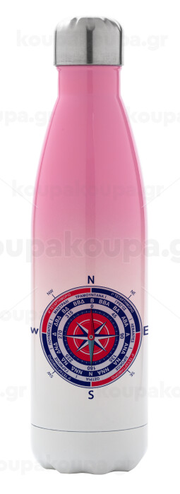 Ανεμολόγιο χάρτης πυξίδα ναυτικού, Μεταλλικό παγούρι θερμός Ροζ/Λευκό (Stainless steel), διπλού τοιχώματος, 500ml