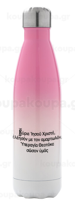 Προσευχή του Ιησού, Μεταλλικό παγούρι θερμός Ροζ/Λευκό (Stainless steel), διπλού τοιχώματος, 500ml