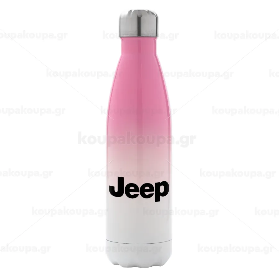 Jeep, Μεταλλικό παγούρι θερμός Ροζ/Λευκό (Stainless steel), διπλού τοιχώματος, 500ml