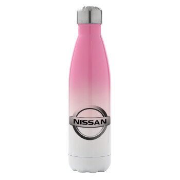 nissan, Μεταλλικό παγούρι θερμός Ροζ/Λευκό (Stainless steel), διπλού τοιχώματος, 500ml