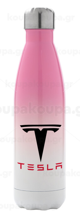 Tesla motors, Μεταλλικό παγούρι θερμός Ροζ/Λευκό (Stainless steel), διπλού τοιχώματος, 500ml