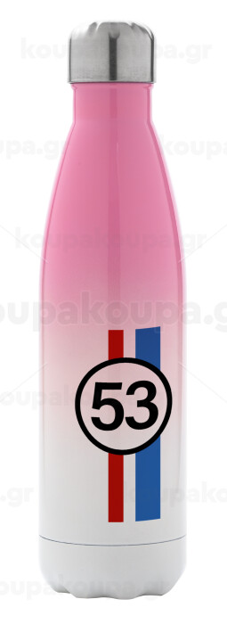 VW Herbie 53, Μεταλλικό παγούρι θερμός Ροζ/Λευκό (Stainless steel), διπλού τοιχώματος, 500ml